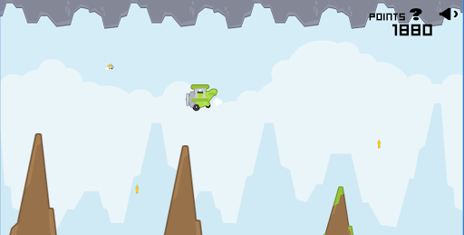 Watch out for the other planes and the tops of the rocks, collect stars and get extra points, or collect bonus items that will change your plane! If you like skill games in arcade style, you will love this game!
