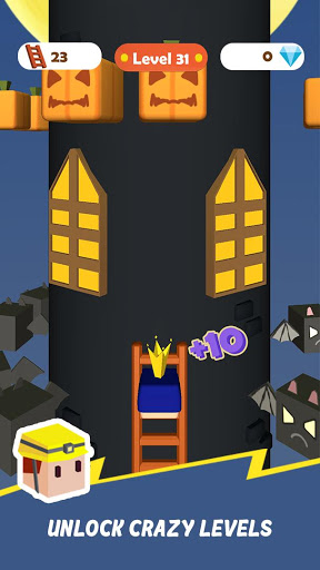 Many missions are waiting for you. Help the King of ladders throughout his journey to save the queen from captivity. A lot of fascinating levels, skins and obstacles not to be missed. Remember a nobleman cannot meet his beloved empty-handed. So be a gentleman and collect the diamonds for her as a sign of your love and try not to fall from the ladder Because you need to be smart enough to overcome all obstacles.