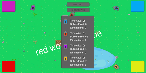New innovative fun game for up to 4 people. Play with your friends in these three gamemodes: Capture The Flag, Last one Standing, Eliminations. Regularly updates, fun experience, simple graphics and much more.