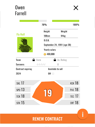 - An in-depth transfer market allows you to strategically decide which players to bring in as you build your Rugby squad. Useful tools allow you to make informed decisions.
