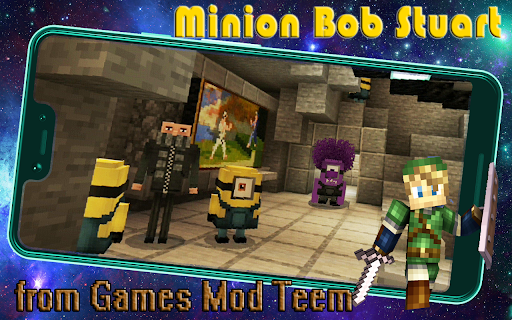 This app download and install Minions Despicable Me games mod for Minecraft. You can use Minecraft mods and map in new run minion games with Gru and evil minions Bob, Kevin or Stuart. Despicable Me games mod MCPE add new mobs in your Minecraft world. This is super villain Minecraft PE Gru, minions Kevin, Bob and Evil minions after injected with PX-41. Our app allows downloading several mods and the map of bunker-laboratory Despicable Me games MCPE. You can download each addon separately and immerse yourself in the special atmosphere of minions rush game world!