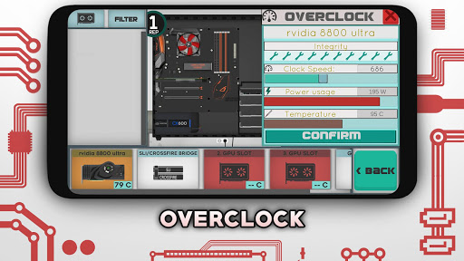 In this PC building simulator you have to earn money by winning different benchmark competitions, completing orders from people to assemble them a PC and achieving even greater results by overclocking your parts. In this game you need to deal with incompatibility, overheating, insufficient power and other issues. You can buy a bigger variety of parts from e-shop but it will be more expensive to buy here than in your local shop or you can wait until those parts will arrive to your local shop. In this game there are over 500 parts that are unlocked by progressing through a calendar. In PC Architect’s alternate universe PC building scene is taken over by Kintel, Rvidia, RMD and Ai.