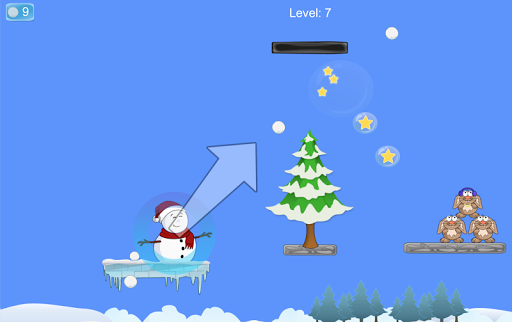 Tap the screen and drag your finger to shoot snow ball from snowman puffy.