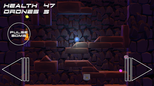 You control the "Danger Ball" the nickname for the Spherical Drones used to fix planetary generators throughout the galaxy. Guide your drone through a series of randomly generated caves down into the planet's core. Be wary of safe guards and traps and be on the look out for power ups which increase shield power and even give you offensive capabilities.