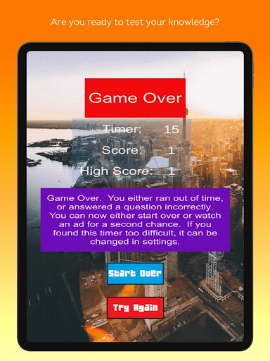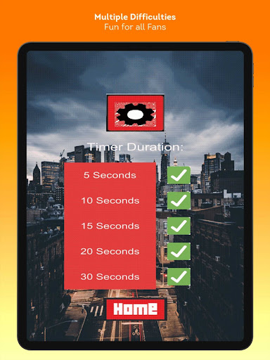 A limited amount of time is given to answer each question, to add challenge and excitement to the game. This timer can be adjusted in the settings menu.