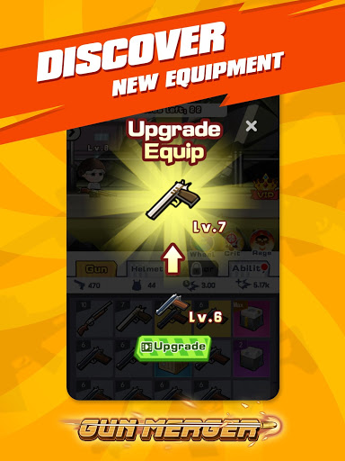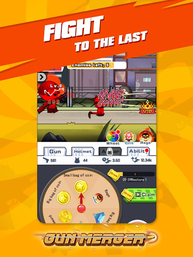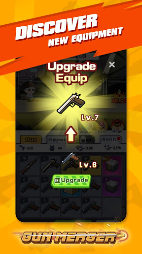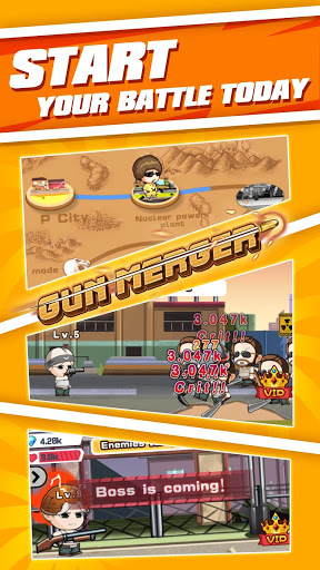 Take control of your every own military equipment. Buy, merge your guns and helmets so you can make your soldier stand on the battlefield to earn money! Also you can spend earned money to upgrade your soldier‘s attributes permanently!