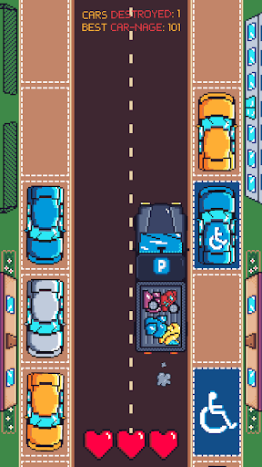 Don't let the speed of your truck impress you, focus on badly parked cars and destroy all of them as soon as possible!