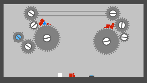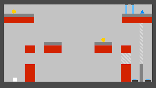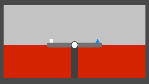 You are the white square and your target is the blue triangle. However you are challanged to complement the level with your own drawn objects. You start with the Drawing-phase. Whenever you hit the Play-button, you give away your drawing ability to get control of your movement.