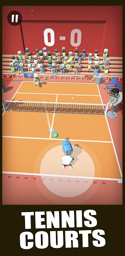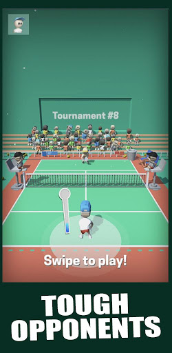 The gameplay is very easy and you can play only with one finger, just swipe your finger to hit the tennis ball with bang-bang or pin pon effects, and don’t forget to equip your character with tennis emoji, cowboy hat, racket that help you a lot to compete against world tennis players.