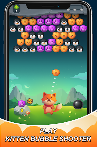 Gameplay in Kitten Bubble Shooter Games is very simple, just tap where you want to pop the bubbles. Group at least 3 balls of the same color to make a magical blast. Clear all the bubbles on the screen or complete the mission in each level of Kitten Bubble Shooter before you run out of moves to save the adorable kitten. Beat all the challenging levels Bubble Shooter Kitten use boosters to overcome difficult levels.
