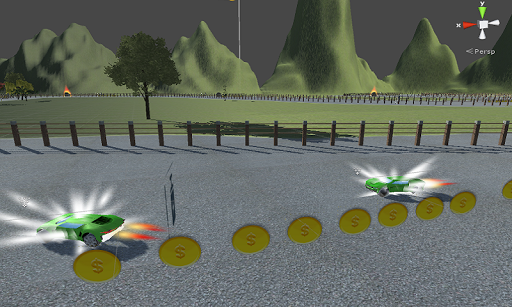 After mode selection game will race will begin, in order to win the race the user will have to reach the finish line while dodging all the obstacles which includes rocks, meteorites, rotating gates, fences and poison boxes. During game play user can coins spread on a track and the power-ups which includes nitro, shield and mega punch. On the completion of a race in case of win user will get a reward which he can use to purchase upgrades and new cars.