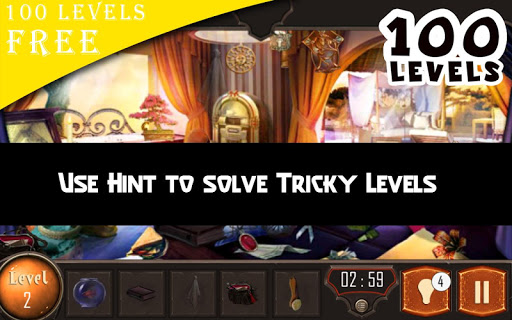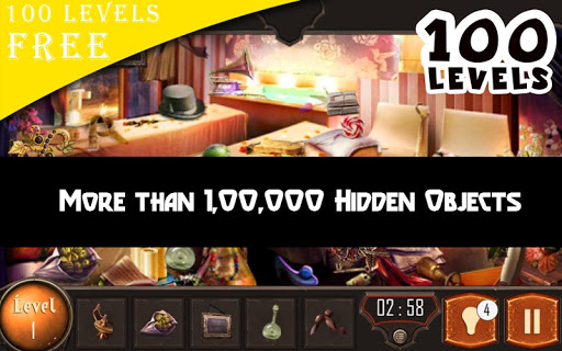 Hidden Objects Games 100 Level Secret Of Clue Hidden Object game has many secret items in a each levels. Enjoy greatest and HD scenes with different mystery and horror house places. Your goal is to find series of hidden objects on each level. Use Hint buttons to find items quickly.