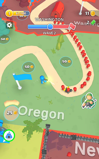Draw the military games nation defense line and save America from the invaders in the army games by showing their might and state patriotism! Your quick reflexes and strategic city wars planning will be put to the test as waves of enemies with a boss approach your state defense line. Fun challenge in each level, to survive tougher enemies with military games weapons and stronger military to avoid the city takeover.