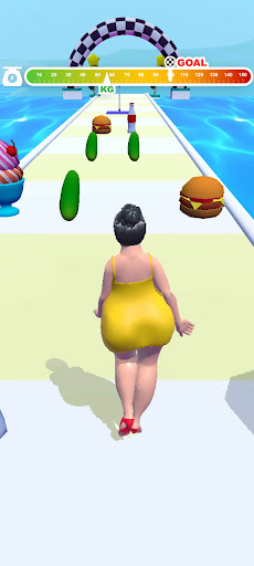 But It's not just a fun body race, there are lot of body weight challenges, which you have to achieve by eating right food items, For instance, if you want to gain weight, you have to eat burgers, sandwiches, ice-cream and milk etc. and similarly eat cucumbers, tomatoes and broccoli to loss your weight. So, You have to choose your diet wisely to achieve your goal and win the level.