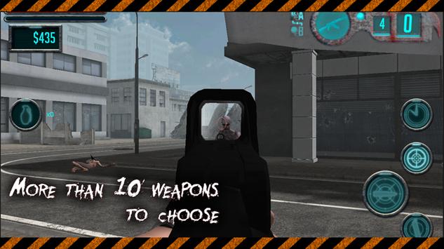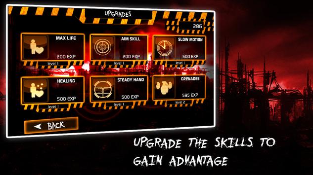Choose one of the 3 scenarios in Zombie Survival mode and try to resist as long as possible. Waves of zombies will come to attack you which you must kill. For every zombie eliminated you receive money to buy more ammo and better weapons or to open doors that will lead you to new areas on the scenario.