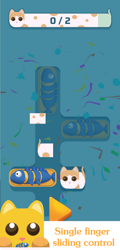 Slide to extend the cat as long as possible and move the obstacle to create a path.