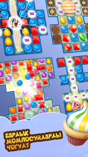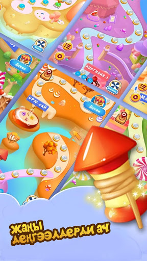 Collect delicious cakes and chocolates; sweets and candies; colorful jellies, and other desserts of three in a row or more.