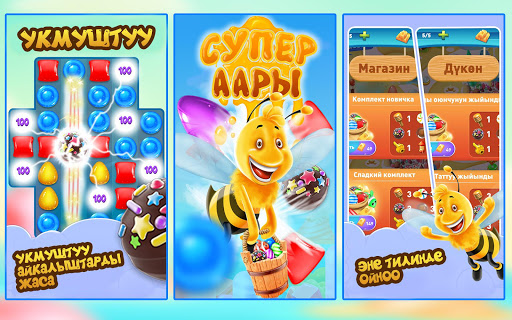 Plunge with Super Bee into exciting adventures along the valleys of sweets and discover new levels.