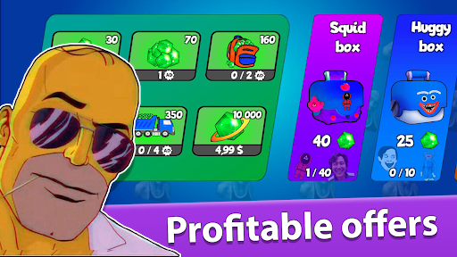 In Bubble Kvass Squid Game Loot Box Simulator! / Case Opener you can get a lot of funny legends champions, based on popular memes for free from a lot of loot box or case clicker. They can help you to relax with standoff of legends memes!