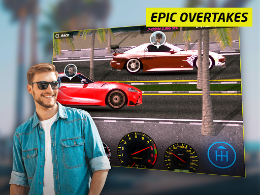 Drag race and enjoy the opportunity to customize your air filter, exhaust, ECU, intake, head, pistons, turbo, gearbox, nitrous, tires and others.