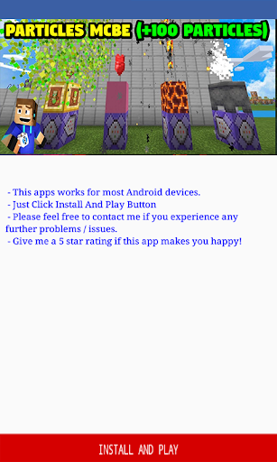 This PARTICLES MCBE is can only be applied with BlockLauncher application and you need install the full version of MCPE in your smartphone or tablet!