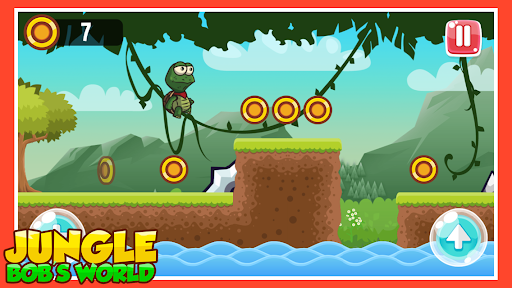 Jungle Bob's World Adventures with various Heroes, Choose between 3 characters and explore the jungle, collect golden coins and get the best score to challenge your friends