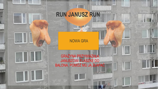 Grażyna przywiązała Januszowi Flaszkę do balona. Pomóż mu ją złapać. - wykaż się zręcznością by nie upaść w przepaść - pokonuj różnorodne przeszkody - znajdź sposób by dogonić balon - zręczne granie zbliży do celu a pomyłka oddali