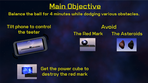 Go through three waves of various obstacles which include a shrinking platform and falling asteroids as you try to keep the ball centered on the platform.
