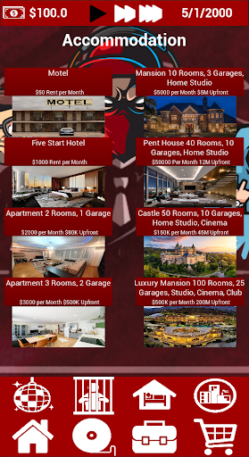 Live a rapper life in the greatest city, be famous in the industry and earn more. Your job is to make sure that you have the basic daily needs to keep yourself alive and stay away from Bankruptcy, become the next billionaire. Stay away from trouble and take wise decisions as it's always going to be a necessity as you go along your HipHop Journey.