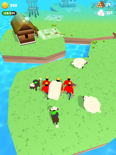 Shear the sheep, cut the woods and collect them to build town houses and start an economy from scratch.