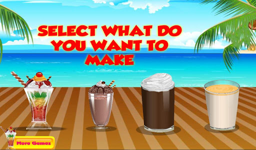This day is spectacular, the view is perfect for something tasty to eat and drink. Stay with us and let's have some fun together through this delicious smoothies app. We live on the beach, here every day is something magical but today because you are here we thought that it is a good idea to make some delightful smoothies with fruits, chocolate, vanilla, and some decorative candies. Summer is the perfect season for shakes and smoothies, we have to choose the best ingredients. First is the time for shopping, you have to buy: red apple, strawberries, cherries, bananas, pears, papaya, grapes. Choose a recipe and start to make the most delicious shake.