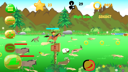 Your sheep ran into the deadly forest. You jump on your horse and went into the jungle and start catching your sheep back. You have a shotgun and rifle to save your life from lions and tigers.