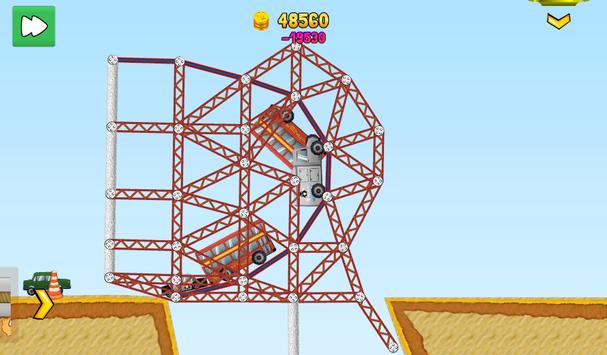 New features, better building materials, more stable compounds, the opportunity to the player to set a static point of support. No restrictions on materials. There is a certain budget. Do you have a fixed amount of virtual money on the game. In each level the player has written off the cost of materials. The smaller the structures used in the construction of the bridge, the lower the costs you incur. If the budget has become very limited, you can try to pass some previous level once again, but with fewer materials. Then the difference back to you in a purse, and plus you get an additional 30%.