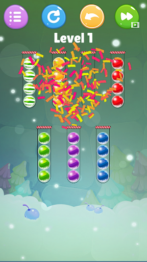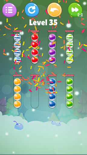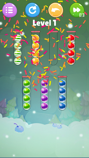 Click any candy in any bottle to move to another bottle with candies of the same color.