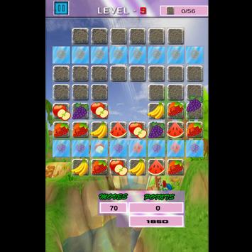 Sua missão é quebrar as pedras que se encontra atras das frutas, e alcançar o score de cada level.