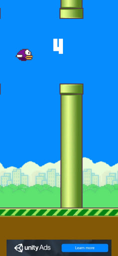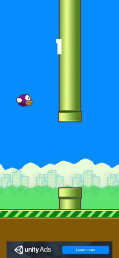 Flappy Play Bird features 2D graphics gameplay. The object of the game is to control the flight of the bird, which moves continuously between the rows of green pipes. Upon collision with them, the game ends. Control is performed by touching the screen, in which the bird makes a small jerk upward. If there is no jerk, the bird falls due to gravity, and the game also ends. Points are earned for each successful flight between two tubes. The gameplay does not change throughout the entire game.