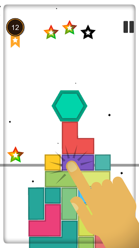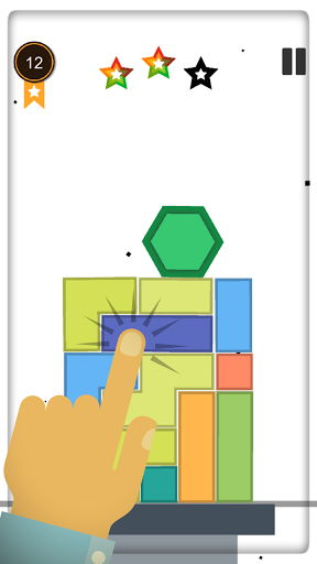 Knock down blocks and safely lower the hexagon to complete the level.