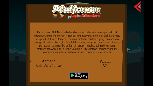 Game Platform 2d halang rintangan bercerita, Pada tahun 1791, Disebuah desa bernama fusha ada beberapa makhluk misterius yang suka meneror/menggangu masyarakat sekitar, oleh karena itu ada penduduk desa tersebut mencari makhluk misterius yang meresahkan warga. itu adalah Lupin, Lupin adalah seorang anak dari desa tersebut yang penasaran dan memberanikan diri untuk menghadapi makhluk yang meresahkan warga desa fusha. Akankah Lupin berhasil menghadapi dan membebaskan desa dari terror makhluk misteruis tersebut??