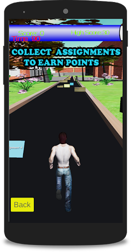 We have proposed an android game in which player run in whole university and collect point in the form of assignments and quizzes. Game has 8 levels which represent the 8 semester of university life. Player has limited time to collect points and complete level. If player couldn’t achieve the target in time, the player has to play again to move to the next level. To move to next level you have to complete the first level.