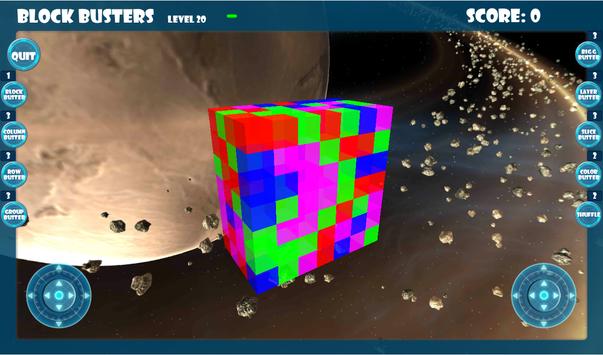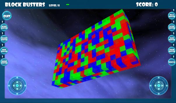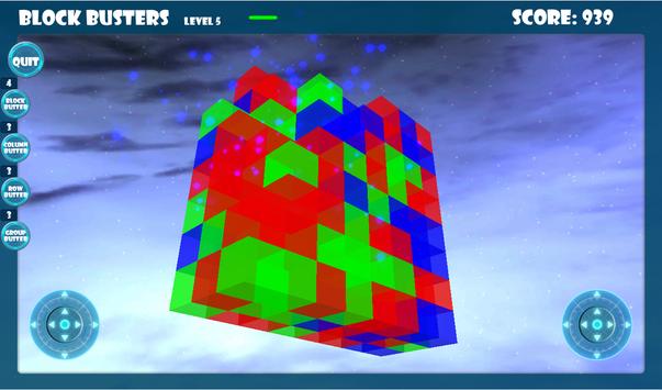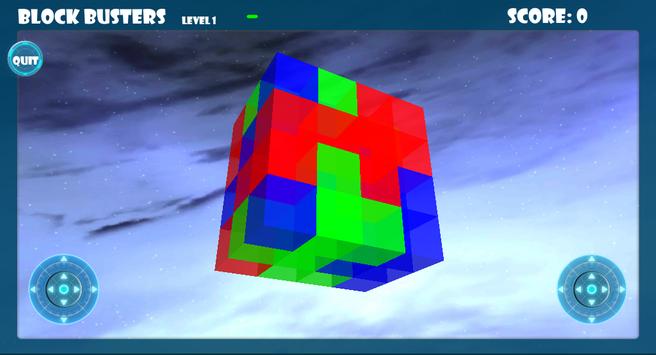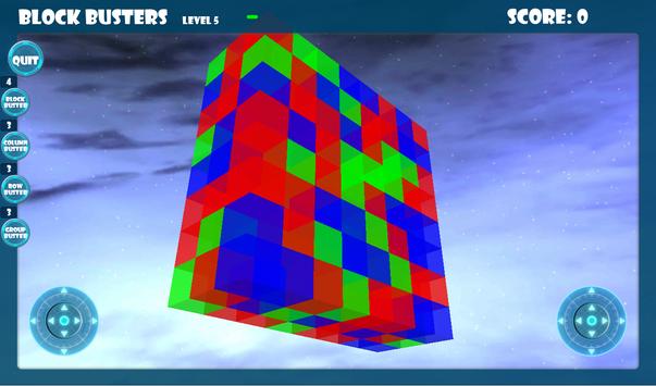Block Busters is a 3D game and the blocks are in a cube of blocks, that means that to match blocks, the blocks must be next to each other and that other blocks of the same color that you can't see can be behind blocks that you can see. There are also joystick controls, the left joystick allows you to position your view of the blocks so that you are able to see up to 3 sides of the blocks, the right joystick allows you to zoom in and out.