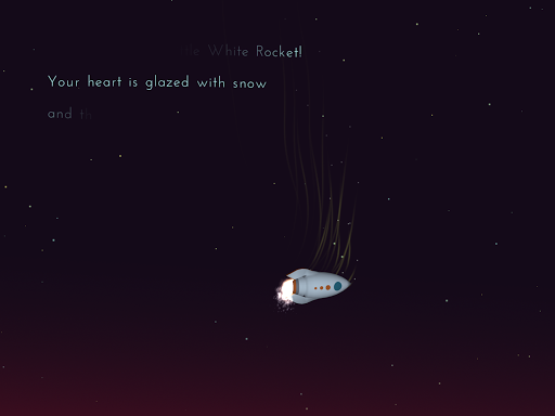 The Spin - Aim - Fly game control is easy to learn and gives a meditative experience. The game is designed to be played and completed in the little spaces and dreams that fall into each day. Enjoy the stillness and quiet of Little White Rocket's adventures and reach the end before you sleep.