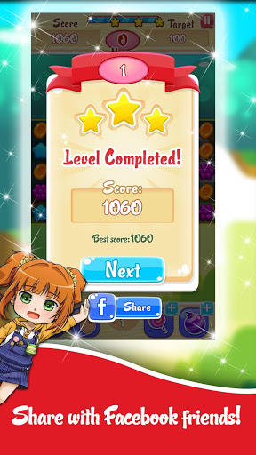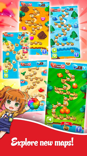 Match 3 candies with the same color to solve compelling levels in this sweet puzzle adventure!