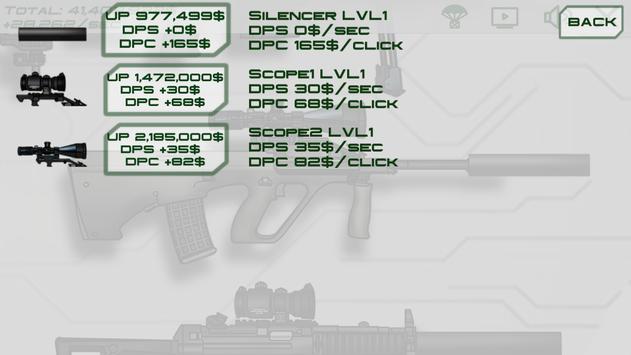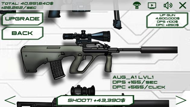 This game is an armory clicker where you can improve a variety of weapons, install a body kit (sights, lasers, flashlights, shops, underbarrel grenade launcher, butts, tactical grips) and open new guns. Pistols, SMG, assault rifles, sniper rifles and, of course, a minigun! Dozens of interesting improvements and a long gameplay will not let you get bored!