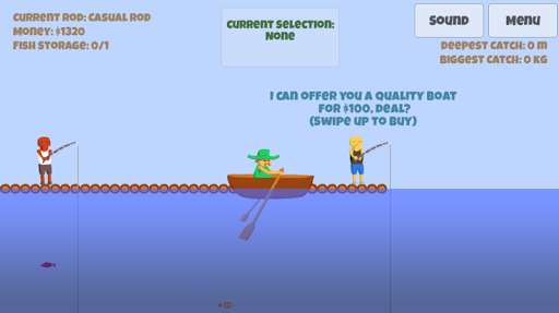 You are also able to upgrade your fishing rod or your boat at the local rod or boat dealers if you can afford it. As you get better and better rods and boats you're able to catch fish from greater debths, and also store more and more fish in your boat.