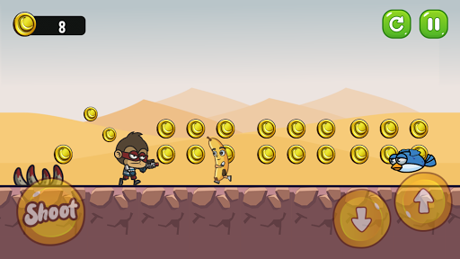 Help the monkey escape from banana - an exciting and endless running adventure game. Run jump run as fast as you can in this endless running adventure game. This game features a monkey running in the jungle and nature to collect points and avoid many obstacles and kill banana to win the levels. Once you start to play this jungle adventure running game, it will surely take your breath away. If you are a fan of jungle survival banana adventure games that are playable offline, then you should definitely play this run and survival game. you'll get to experience a real fun gameplay. If you are looking for fun shooting banana games for free to have some great gaming sessions to run and shoot and slide some funny characters monkey vs banana will definitely make you happy. *HOW TO PLAY* - Shoot the banana - Tap Up to jump and avoid obstacles - Tap Down to roll from below the obstacles Collect all coins and become the best banana killer in banana adventure game. Download monkey vs banana, the addictive runner adventure game, for free on your Android phone or tablet, and let us know about any feature requests, or any other suggestions.