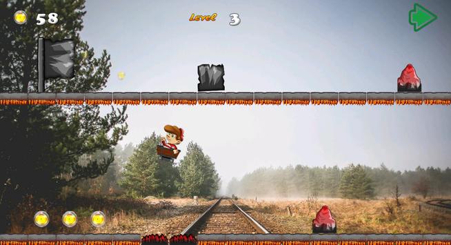 Tap screen or trackball to jump to avoid obstacles in your world adventure!