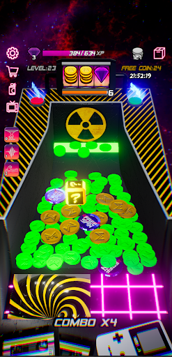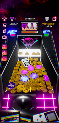 Nebula: Coin Pusher is a game that takes you into space among the nebulae, in a synthwave/retrowave universe 🚀✨
