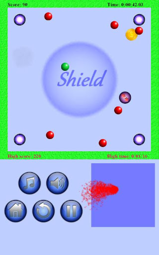 - Try to earn coins and withstand much time as possible without touch any red ball.