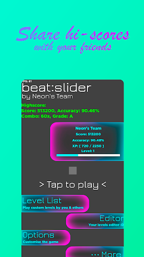 • Ability to play custom levels to your favorite music