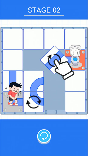 Move the sliding tiles to unblock a path for the boy to go to the toilet. Enjoy the satisfaction of seeing the boy run funnily through the connected path.